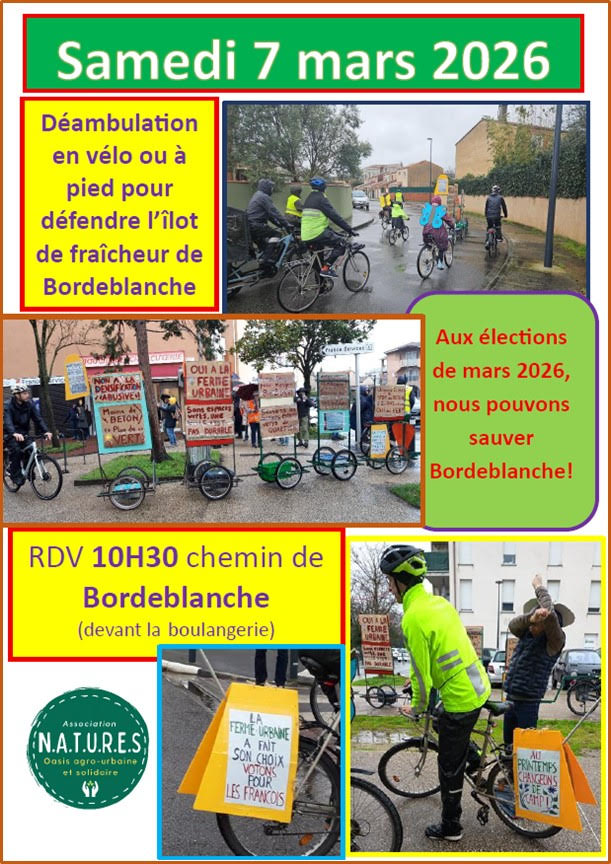Alors le combat est loin d’être perdu comme le voudrait le Maire de Toulouse. Poursuivons notre mobilisation et nous sauverons Bordeblanche.